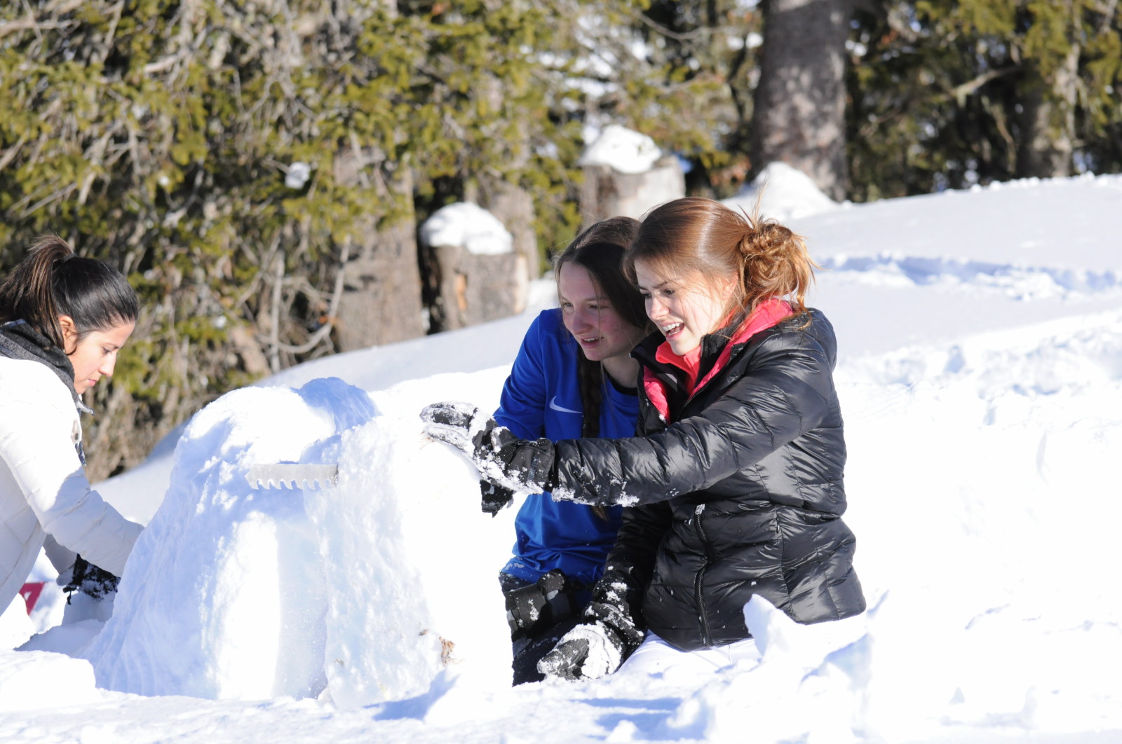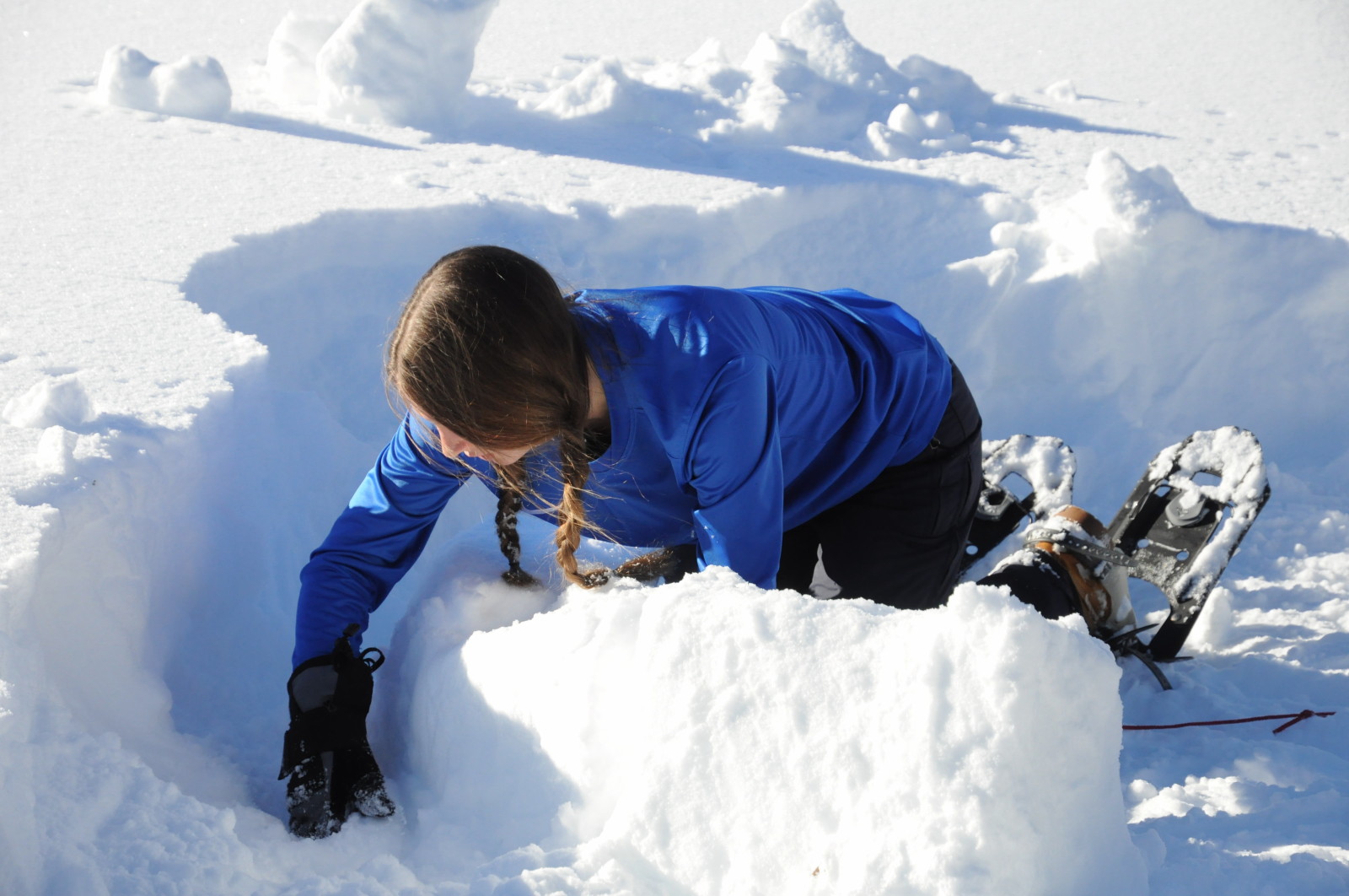 Bei schönstem Wetter lernten Fussballerinnen Iglus zu bauen. Der Schnee war nicht ganz optimal, was zu ein paar Herausforderungen geführt hat. Am Ende war dann doch ein Iglu fertig. Bravo!