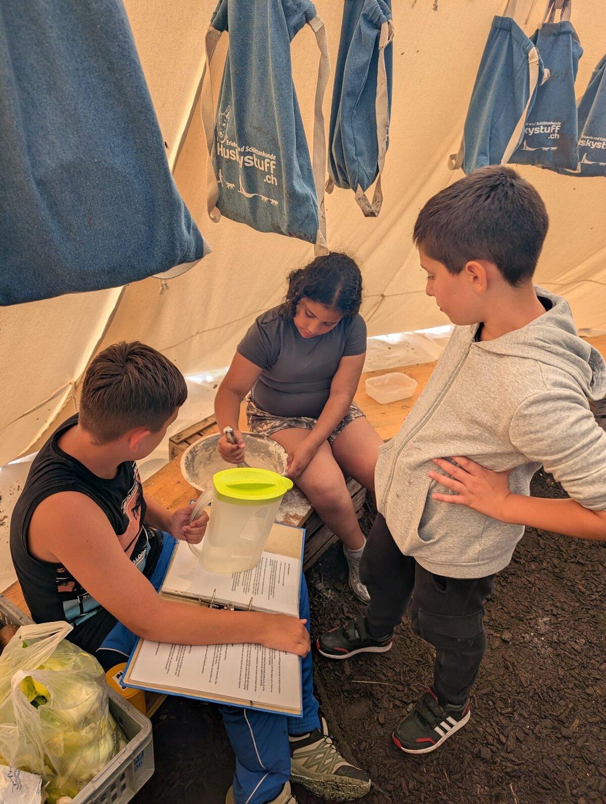 Trotz dieses nassen Erlebnisses haben wir auch positive Erinnerungen daran: Lustig war zum Beispiel, dass wir mit einem Gummischlauch abgespritzt wurden – aber nicht mit kaltem, sondern mit heissem Wasser! Für einen kurzen Moment haben wir nicht gefroren. Und das Aufwärmen am Lagerfeuer hat uns richtig Spass gemacht. Gemeinsam haben wir sogar eine Fantasie-Geschichte erfunden.