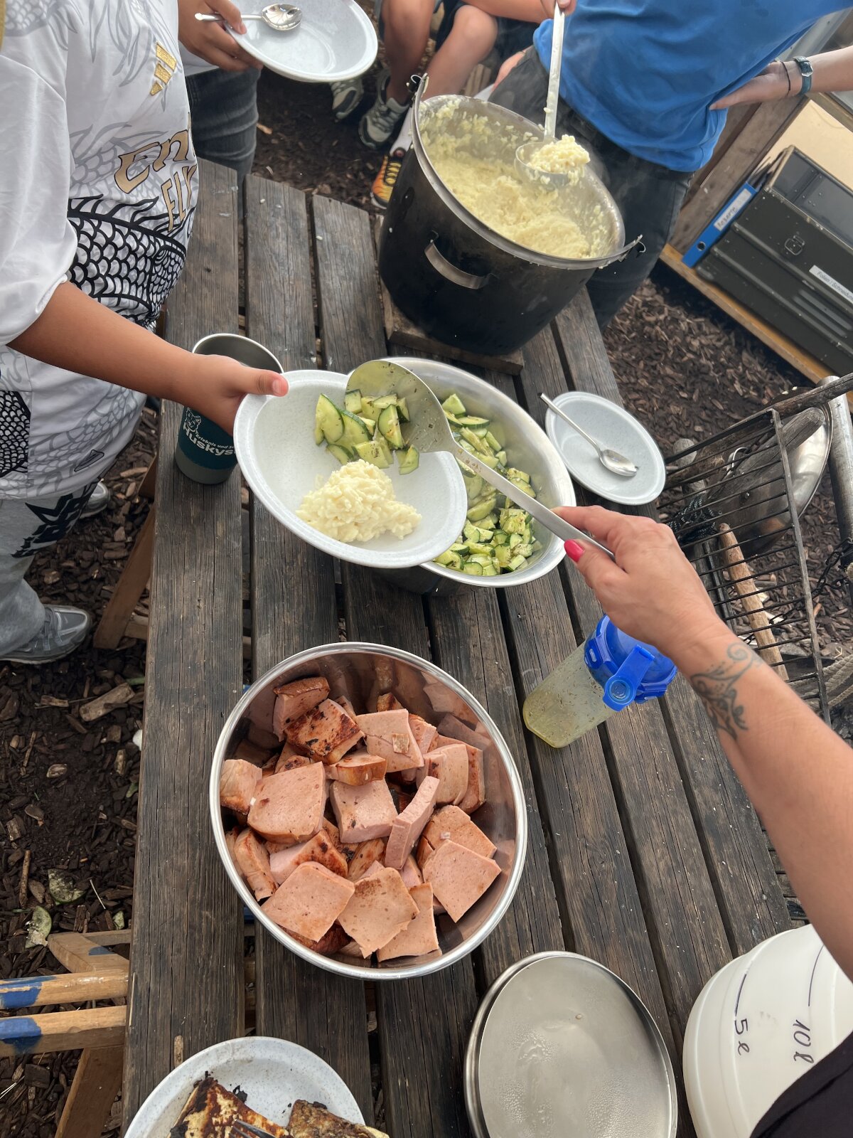 Zurück bei den Tipis hatten wir richtig Hunger. Während die Koch-Gruppe ein leckeres Mittagessen vorbereitete, erledigten alle anderen fleissig ihre Ämtli. Zur Belohnung gab es selbstgemachte Burger!