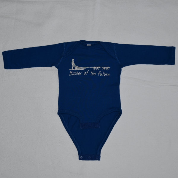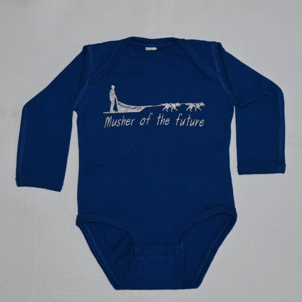 Druck vorne: Husky-Gespann mit Text „musher of the future“
